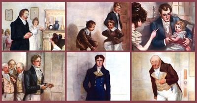 Collage illustrations by A. Wallis Mills for Jane Austen's novels, 1908-1910